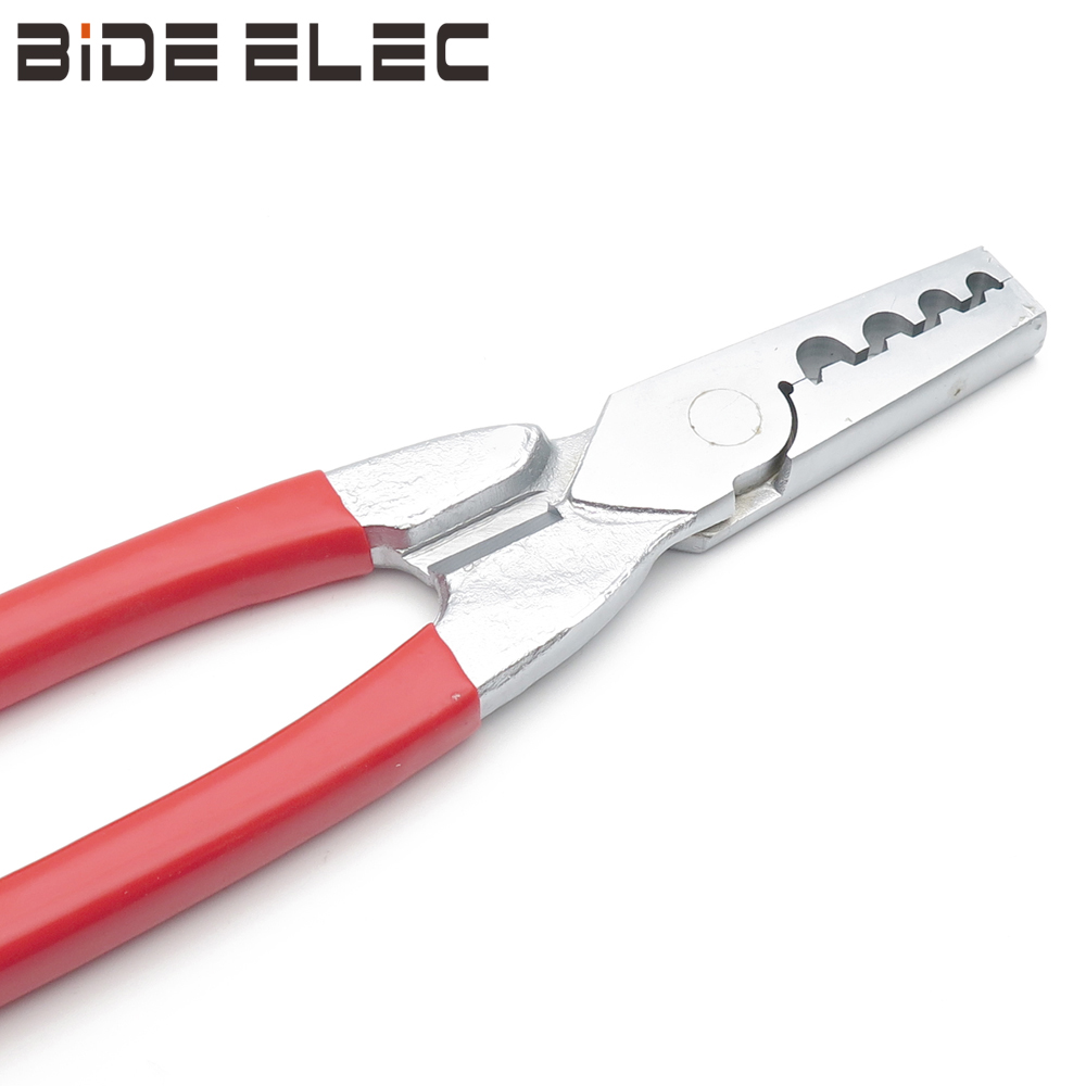 端子压接钳属于手动工具,需将端子和电线组装好后放入相应的压槽中,再进行压接使两者固定连接,具有一定的专业性和专一性;