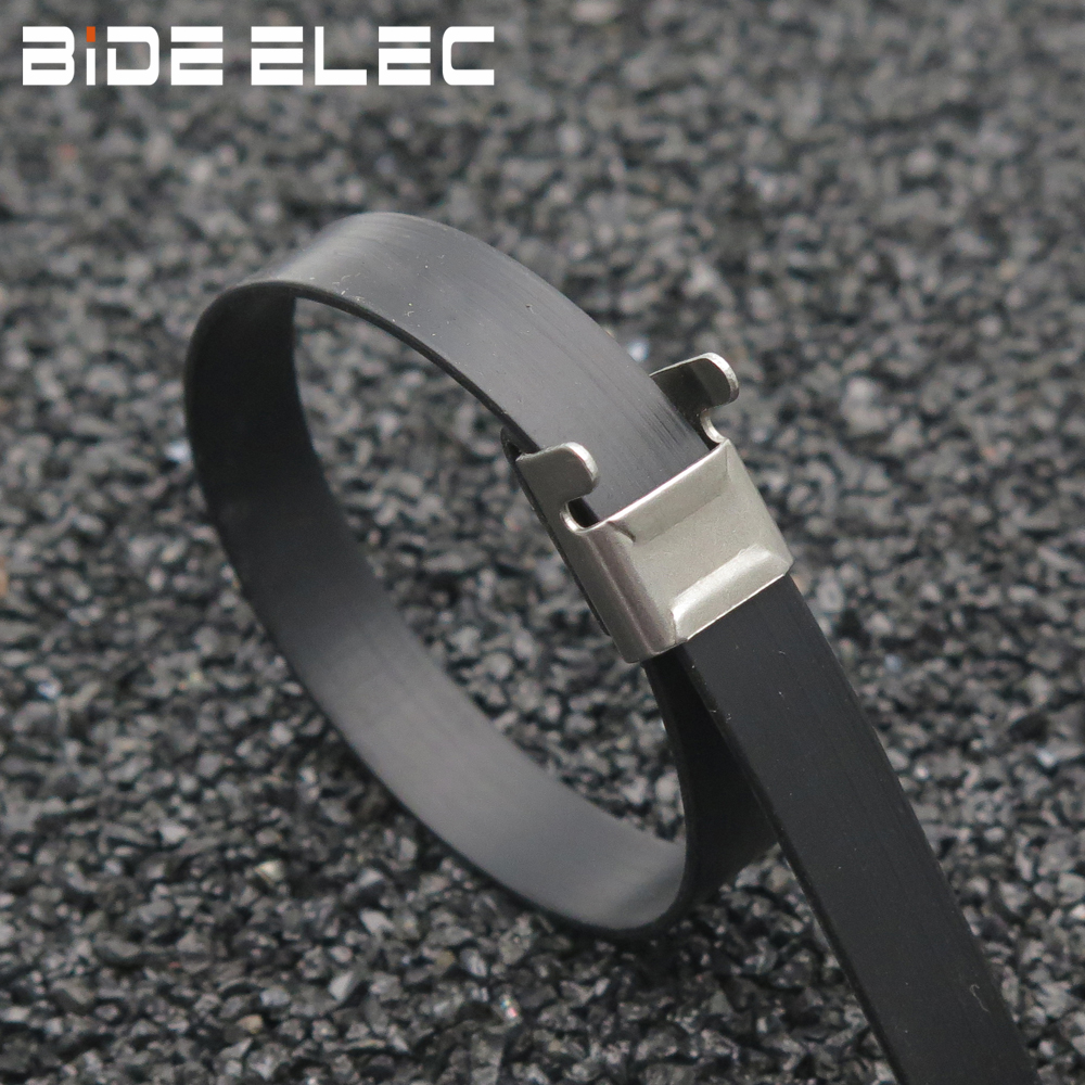 喷塑L型捆绑带根据客户不同需求可采用SS201、SS304或SS316不锈钢制成;
