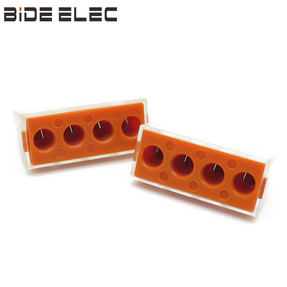 PCT-104D连接器有4个互通的孔,可连接单股/多勾绞合导线2.5-6.0mm2 ,替代传统鸡爪接线、镀锡和电胶布工艺,提高了美观度和接线效率,增加了安全性;