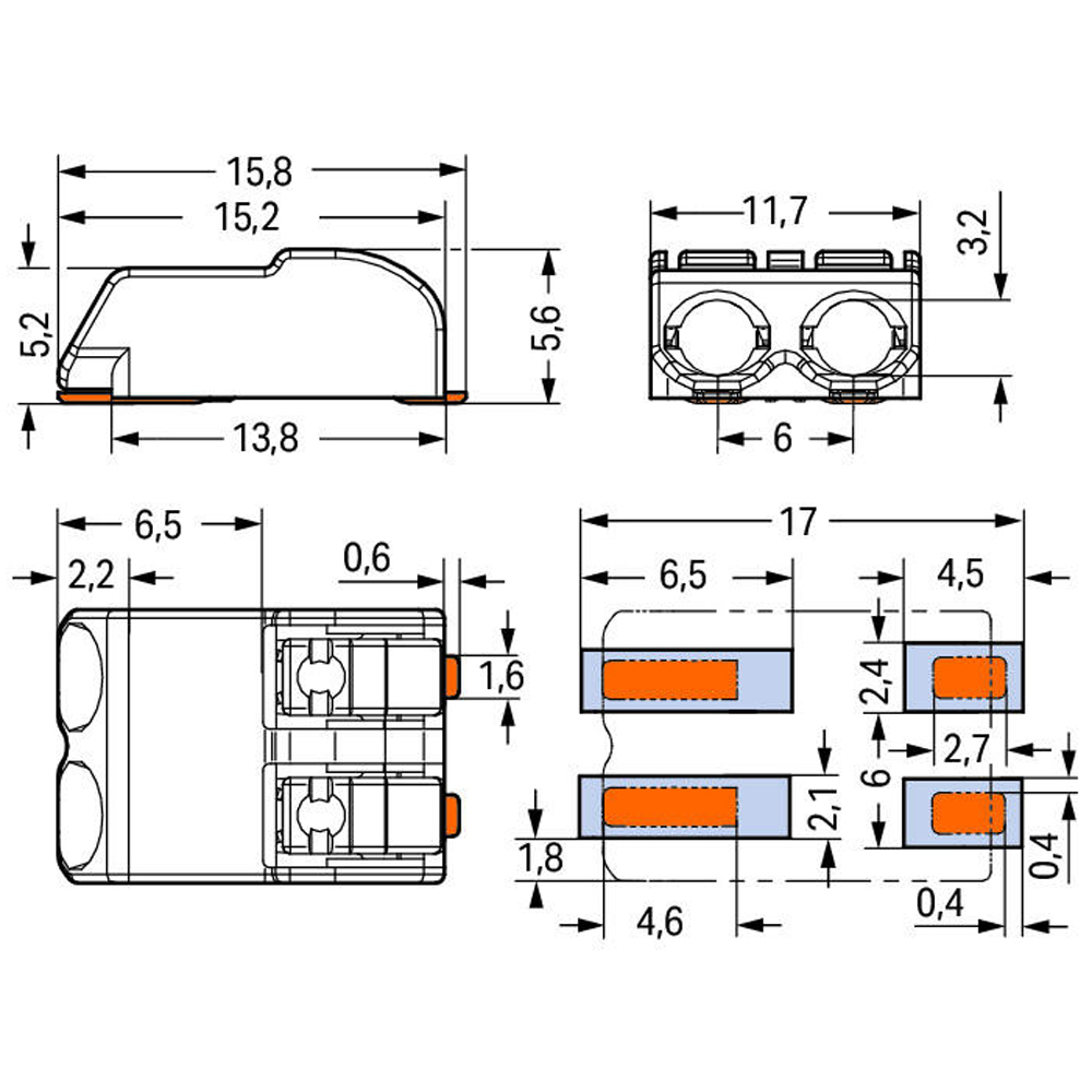 万可WAGO2061-602/998-404间距6MM二极SMD PCB贴片端子
