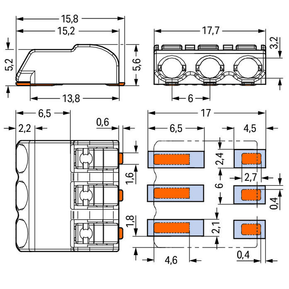 万可WAGO2061-603/998-404间距6MM三极SMD PCB贴片端子