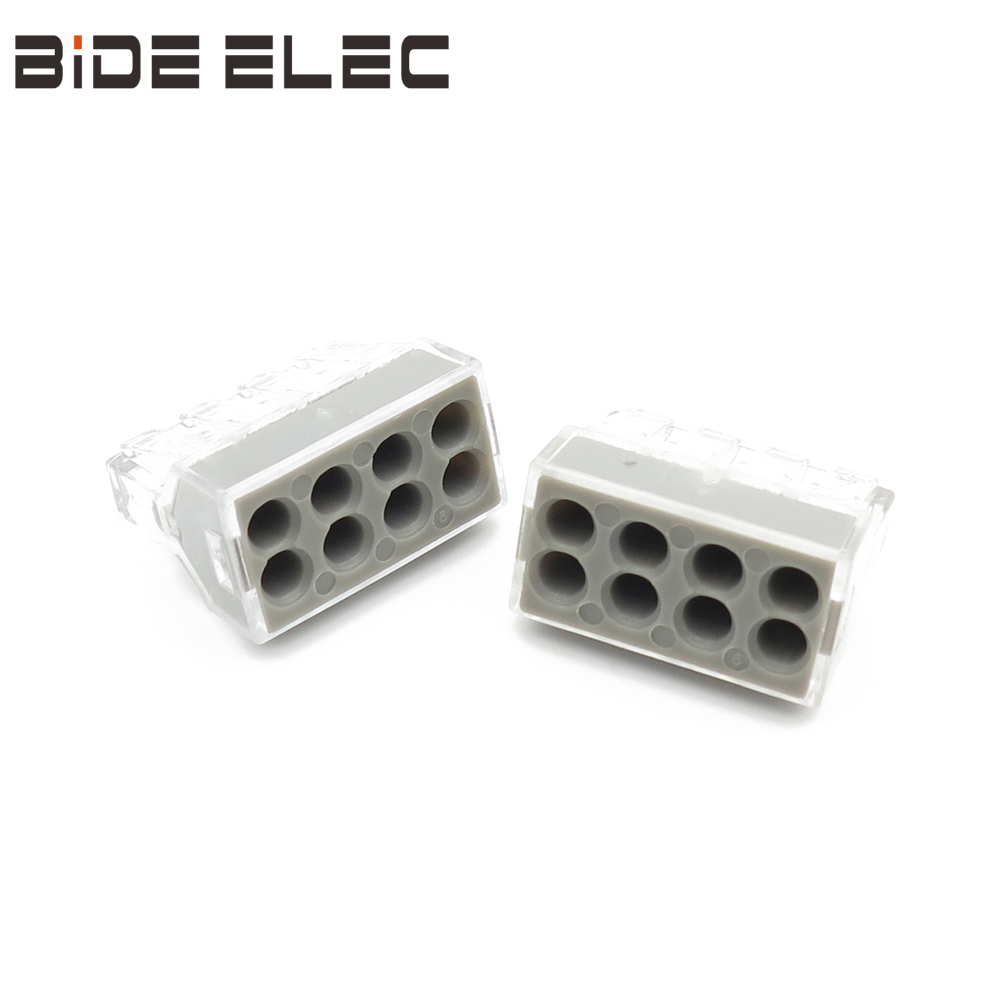 PCT-108连接器有8个互通的孔,可连接单股/多勾绞合导线0.75-2.5mm2 ,替代传统鸡爪接线、镀锡和电胶布工艺,提高了美观度和接线效率,增加了安全性;